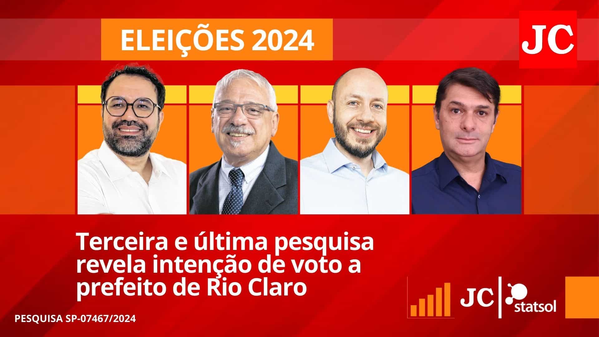 O Jornal Cidade apresenta neste domingo (29) a terceira e última pesquisa eleitoral de intenção de voto a prefeito de Rio Claro para a Eleição 2024. O levantamento aconteceu ao longo dessa semana, entre 24 e 26 de setembro, em todas as regiões do município, em mais de 10 setores diferentes. A pesquisa traz três cenários, sendo espontâneo, estimulado e de rejeição.