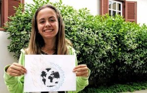 Alunos do Koelle produziram desenho sobre o ‘futuro do planeta’. Vitória Lucci exibe seu trabalho à reportagem
