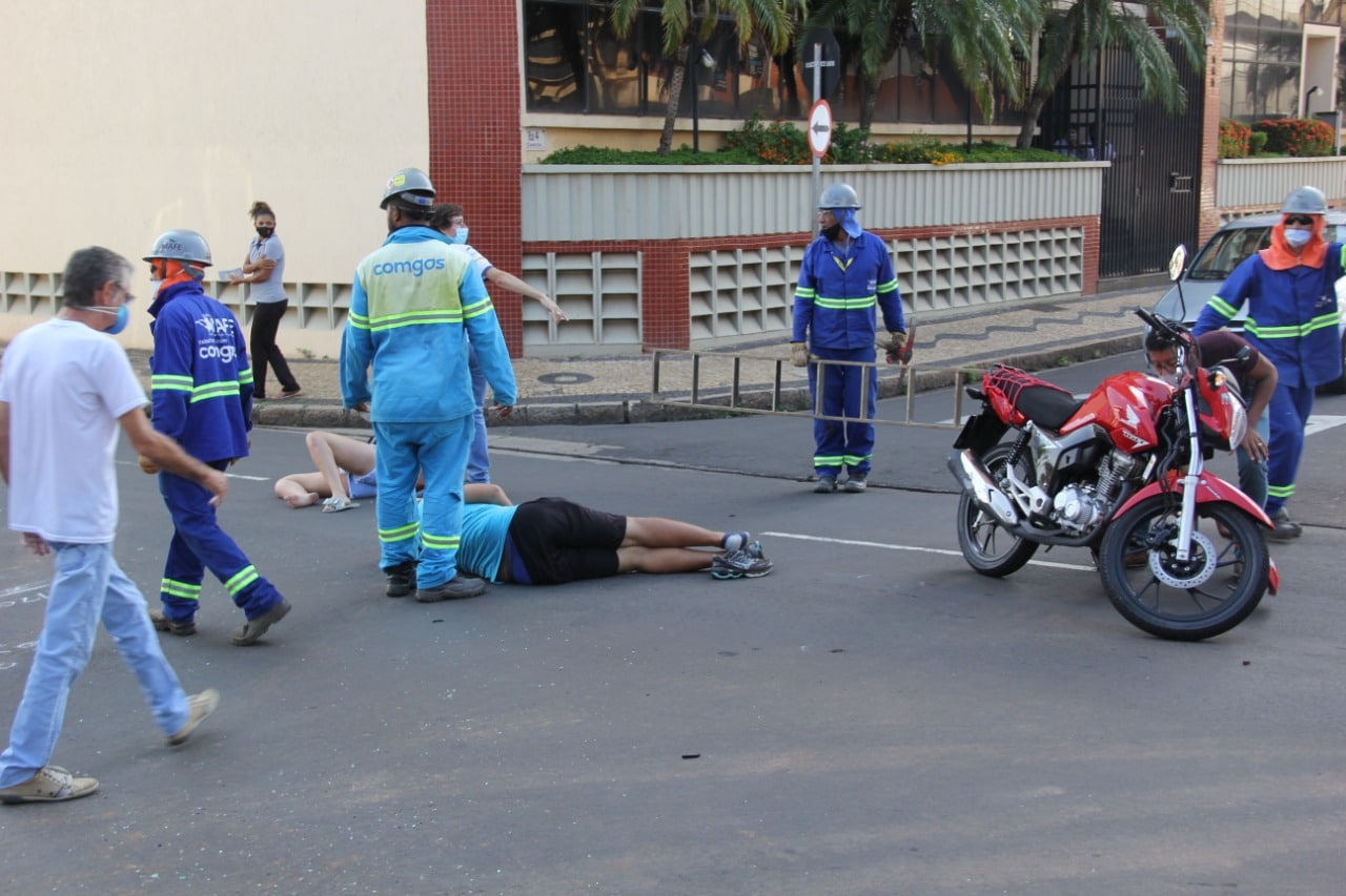 Com o impacto, o motocicleta e a acompanhante foram lançados ao chão e sofreram ferimentos leves. Uma equipe da concessionária de gás que trabalhava no local prestou socorro às vitimas, acionou a Policia Militar e o Samu e até ajudou a organizar o tráfego no trecho.
