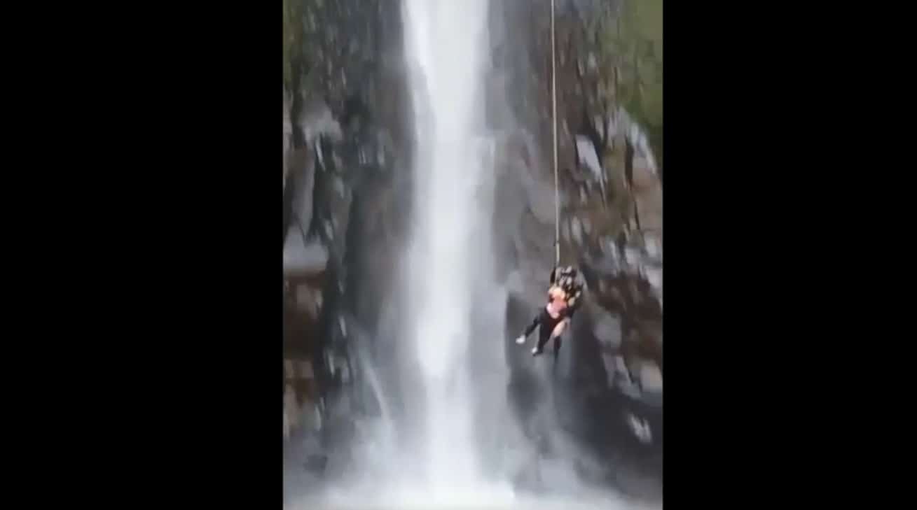 Um vídeo que circula nas redes sociais mostra uma dupla de instrutores que iriam saltar de uma cachoeira localizada na cidade Ibaté, na manhã de domingo (13), de uma altura de cerca de 70 metros e, as imagens impressionam, mas ambos passam bem. De acordo com Adelino Martins, integrante do grupo Vida nas Cordas e responsável pela atividade, o sistema de segurança do equipamento foi acionado para resguardar o casal, que pratica o esporte há tempos e é devidamente capacitado para o mesmo. A mulher é da cidade de Rio Claro.