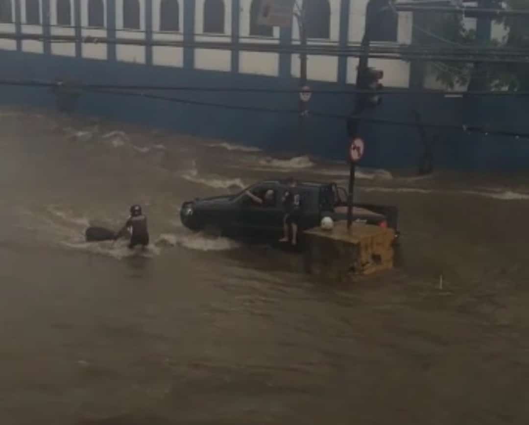 Entre as imagens que mais chamaram a atenção e repercutiram nas redes sociais e imprensa o resgate de duas pessoas em uma motoneta por um motorista que estava em uma caminhonete. Ele foi o primeiro a parar para prestar ajuda às vítimas que lutavam contra a correnteza para não serem arrastadas. Esse aventureiro com espírito solidário é o rio-clarense Saulo Gonçalves Pegorin, 38 anos que a bordo da sua S-10 fez a diferença: “Eu me deparei com duas pessoas na Biz com dificuldades em meio a toda aquela água. Na verdade a moto estava sendo arrastada e eu posicionei a caminhonete na frente para evitar que ele fosse embora com a correnteza. O piloto da moto estava com o filho então eu imediatamente falei pra esse menino subir na caminhonete, se pendurar, se agarrar forte ali mesmo do lado de fora porque não tinha como abrir a porta já que a água já ultrapassava as rodas. A partir daí o pai dele conseguiu prender a moto na frente da S-10 e com ajuda de mais uma pessoa retiramos eles e o veículo das águas”