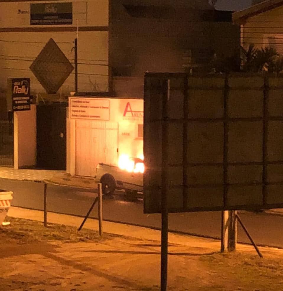Na madrugada deste sábado (13) um veículo Saveiro de cor prata pegou fogo na Rua 8 entre as Avenidas 10 e 8, bairro Santa Cruz.