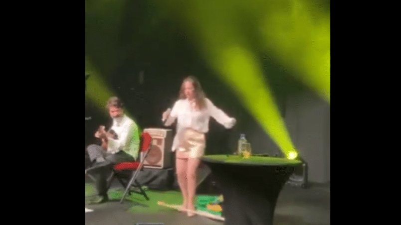 A artista que é filha do cantor e compositor João Gilberto, pisoteou uma bandeira do Brasil atirada pelo público que estava na plateia. “Desculpe fazer isso. Mas… eu estou feliz de ser brasileira ou não?”, afirma Bebel, em inglês, e na sequência emenda com a música “Bananeira”, sem falar mais sobre o gesto. A cena foi gravada na última terça-feira (19).