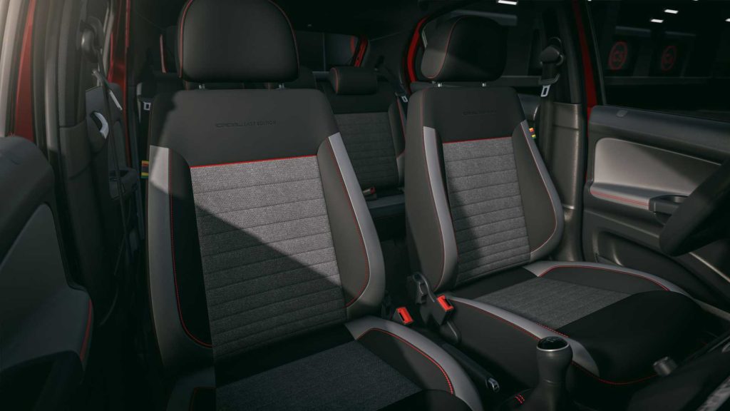 No interior, deu para notar a presença de costuras vermelhas nos assentos, na coifa do câmbio, no carpete e no volante. Vale ressaltar, também, a inspiração nos bancos Recaro dos Gols GTS e GTi, do final dos anos 80 e início dos anos 90.