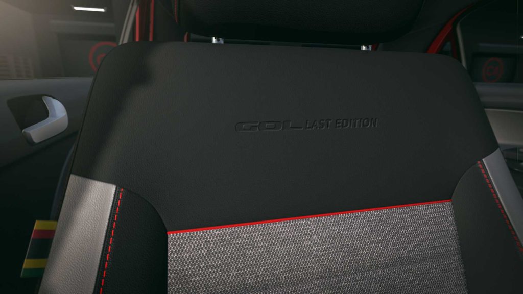 Entre os principais destaques do Gol Last Edition está o contraste entre a cor vermelha da carroceria e os traços pretos ao redor do carro. Pudemos observá-los nas rodas de liga leve de 15 polegadas, na tampa traseira e na inscrição presente nas laterais. Além disso, traz um logotipo na coluna traseira fazendo alusão às rodas orbitais do Gol da primeira geração.