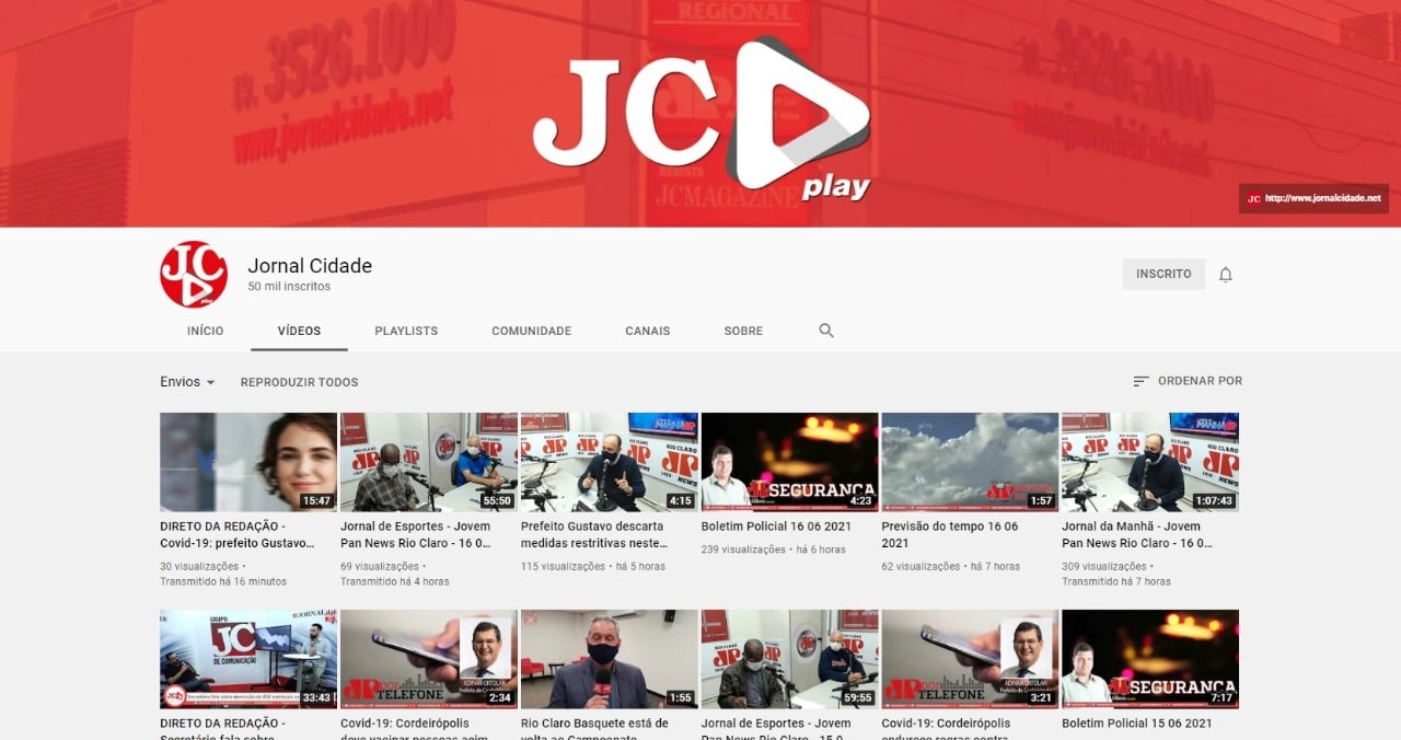 Nesta quarta-feira (16), o canal do Jornal Cidade no YouTube atingiu a marca de 50 mil inscritos. Ao longo dos últimos 11 anos, o canal conquistou a preferência de internautas de Rio Claro e da região, e também de pessoas que residem em outros pontos do Brasil e até em outros países e que buscam conteúdo de qualidade, credibilidade e rapidez na informação.