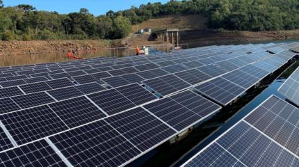 o lago de uma usina hidrelétrica, o que amplia a capacidade elétrica do espaço. Os módulos fotovoltaicos captam a radiação do sol e a convertem em eletricidade, que é injetada na rede de distribuição.